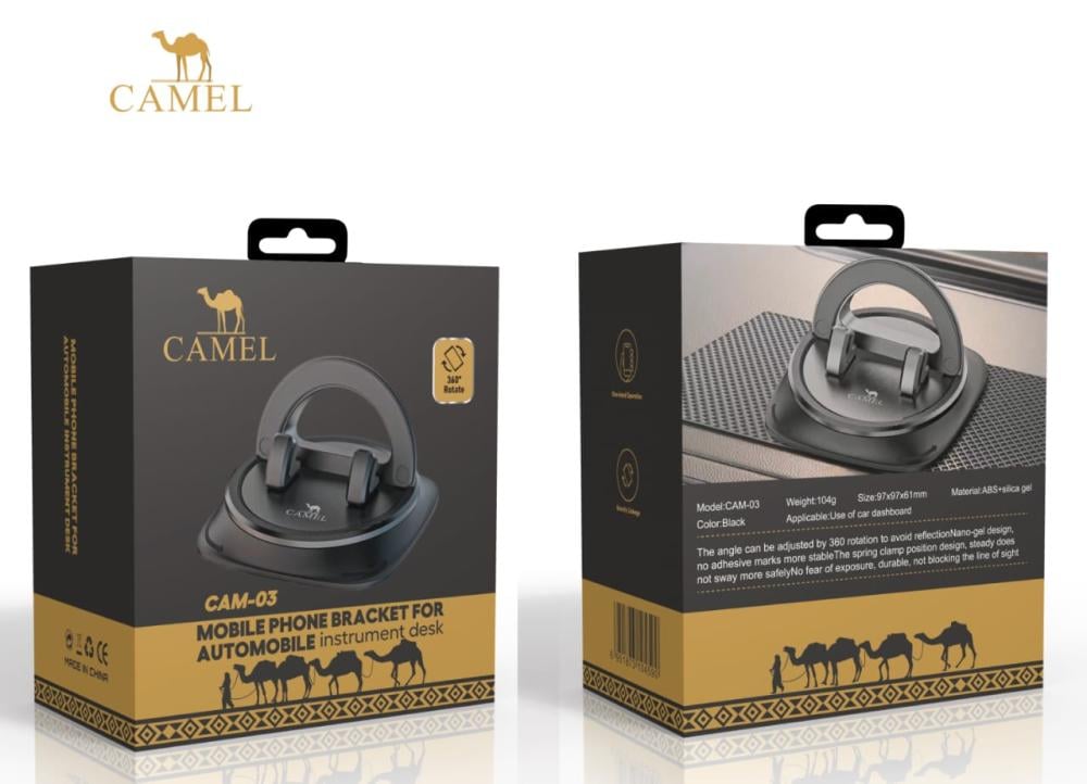 قاعدة الجوال من كاميل (CAMEL) موديل CAM-03 هي حامل جوال مخصص للاستخدام على تابلوه السيارة، وتتميز بالمواصفات التالية: